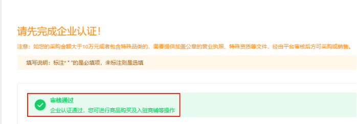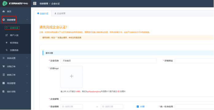 2.5审核通过后企业认证成功,可以继续完善企业资料信息