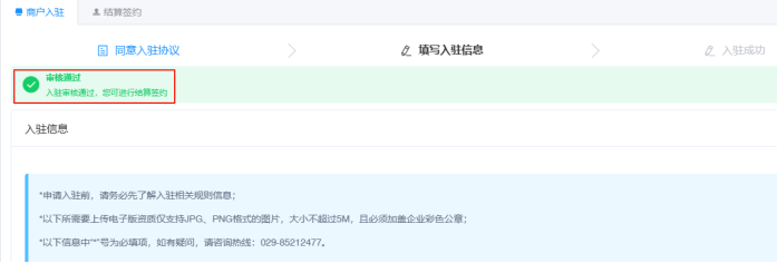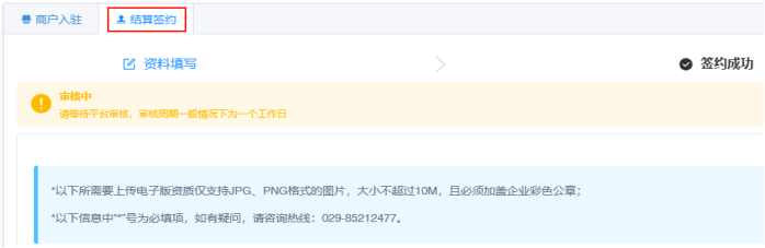 3.3填写结算签约信息并点击保存按钮,等待审核