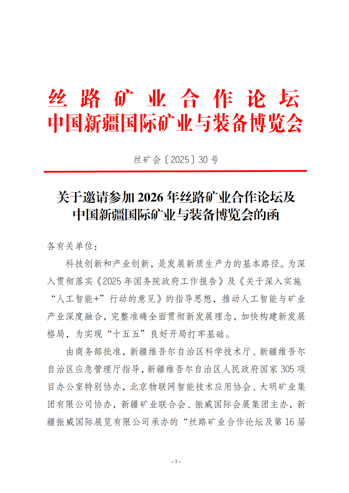 首页 > 资讯中心 > 2026 年丝路矿业合作论坛及 中国新疆国际矿业与装备博览会