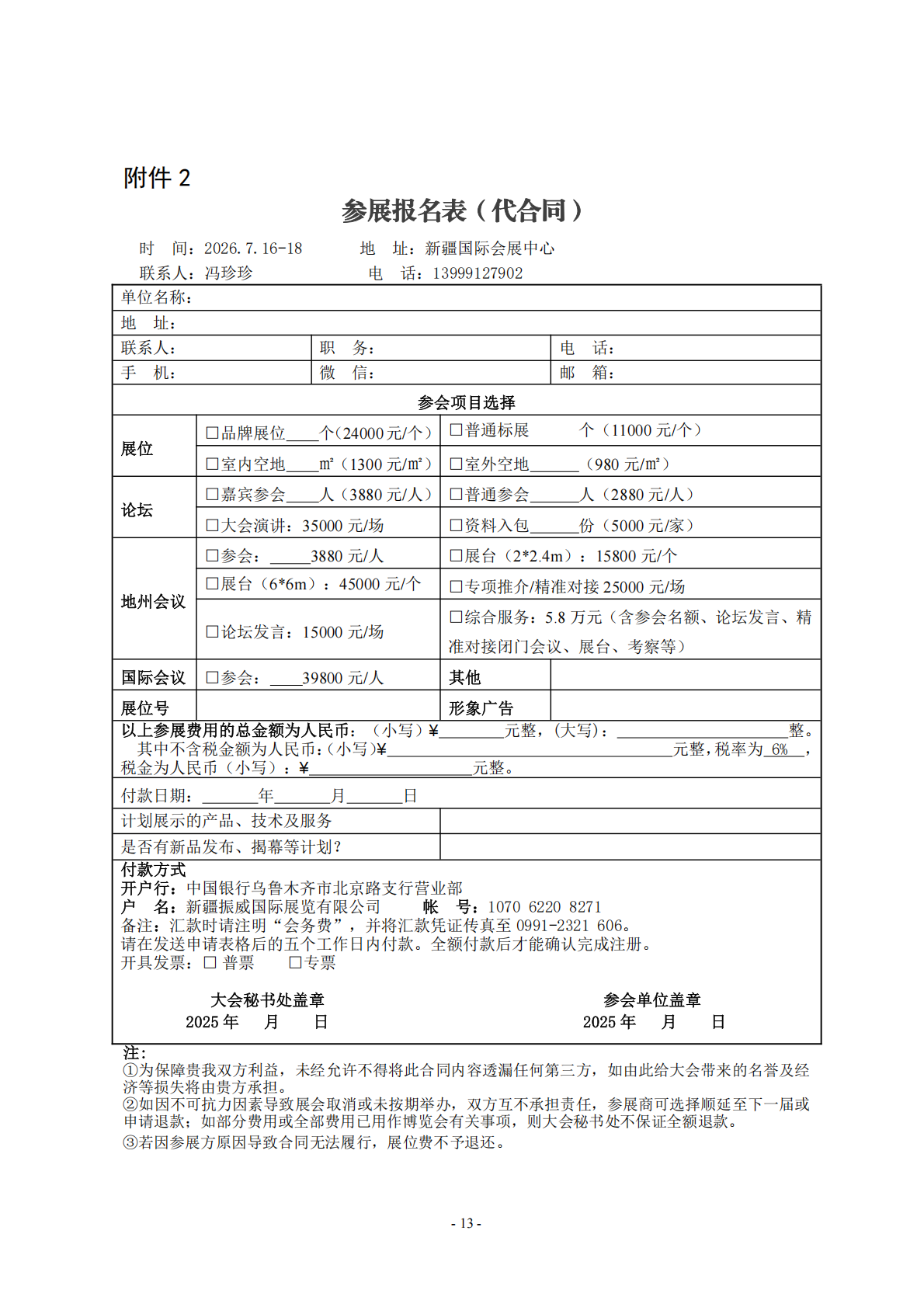 展会名称: 2026 年丝路矿业合作论坛及 中国新疆国际矿业与装备博览会