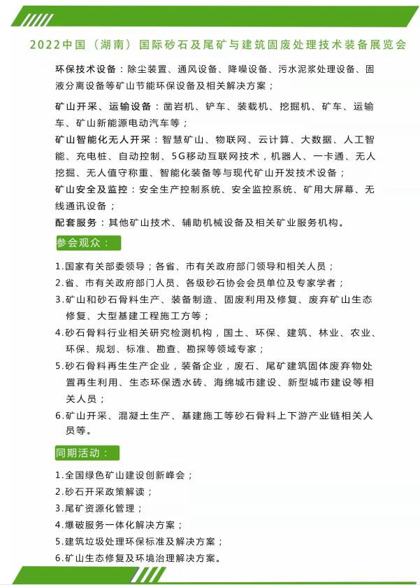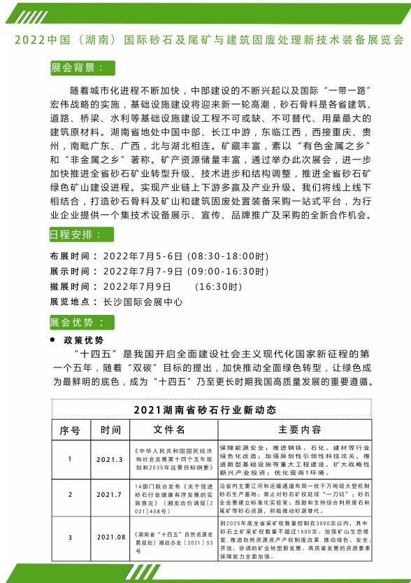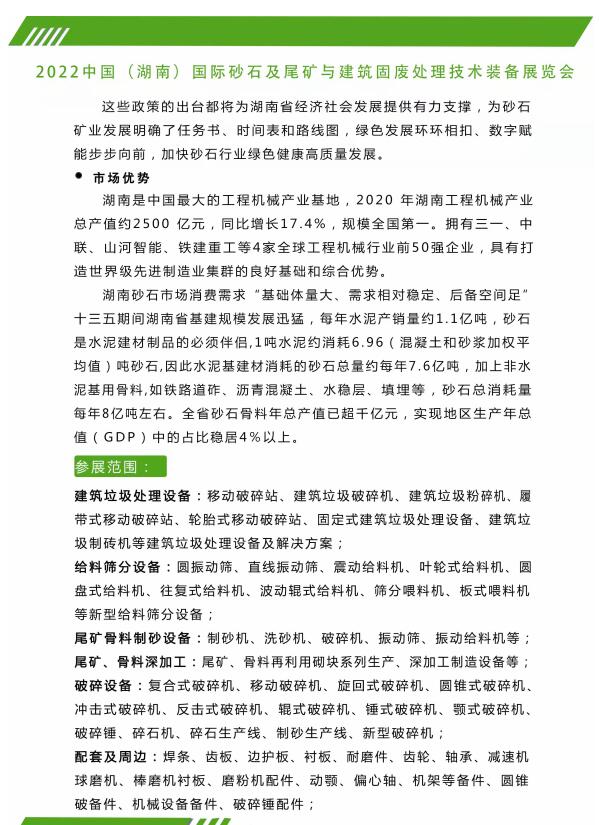 首页 > 资讯中心 > 2022中国(湖南)砂石与建筑固废处理技术装备博览会