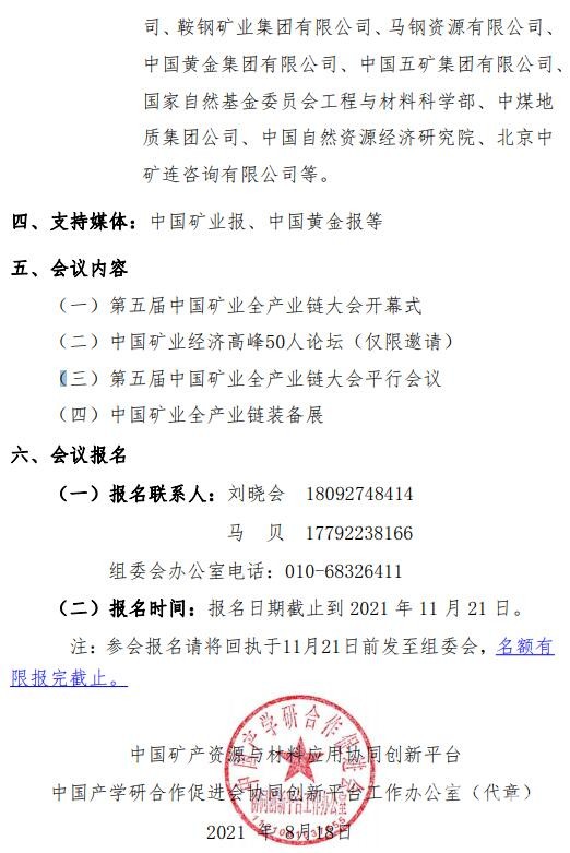 关于召开第五届中国矿业全产业链大会的 通 知