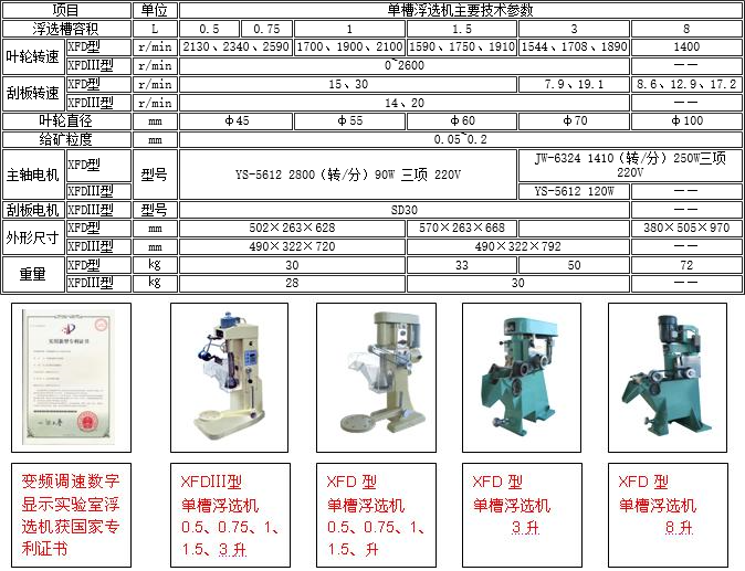 XFD型系列单槽浮选机适用于地质、冶金、建材、化工等矿山和科研部门实验室用于搅拌、擦洗、分离和精选少量矿样。XFDⅢ型单槽浮选机是XFD型更新换代产品,它采用变频技术,叶轮无级调速,数字显示,调 整精确,运转可靠,该机采用外充气,充气可调,准确稳定。(温控装置可根据用户需要另行配置)