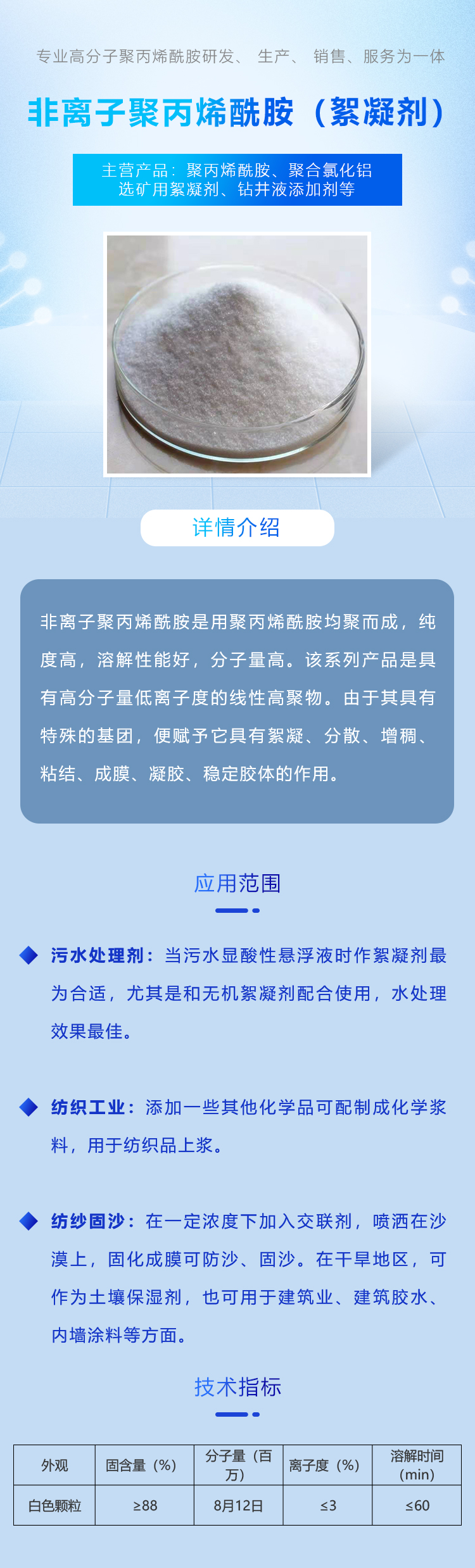 首页 > 商城 > 非离子聚丙烯酰胺(絮凝剂)