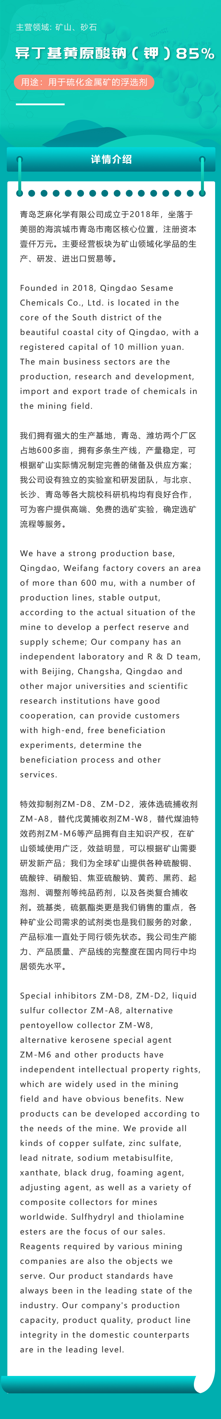 用途: 用于硫化金属矿的浮选剂